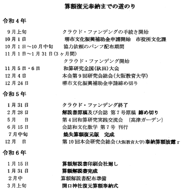 なお算額復元と解説書の作成には、合わせて200万円を超える費用が必要です。本会では、堺市文化活動補助事業とクラウドファンデングでその費用を賄う予定です。