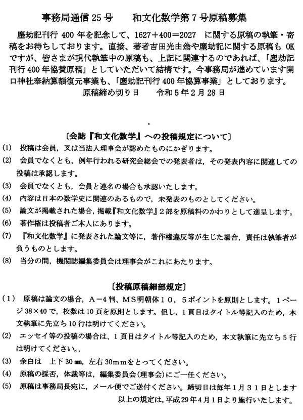 2022年10月14日 / 最終更新日時 : 2022年10月14日 wasan 未分類 通信ー25ー 和文化数学第7号原稿募集 Tweet Pocket Follow me! FacebooktwitterHatenaPocket コメントを残す コメントをキャンセルメールアドレスが公開されることはありません。 * が付いている欄は必須項目ですコメント 名前 * メール * サイト 次回のコメントで使用するためブラウザーに自分の名前、メールアドレス、サイトを保存する。