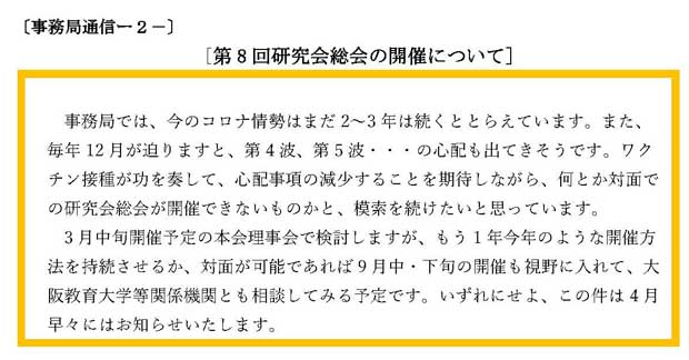 通信ー2- 第8回研究会総会の開催について